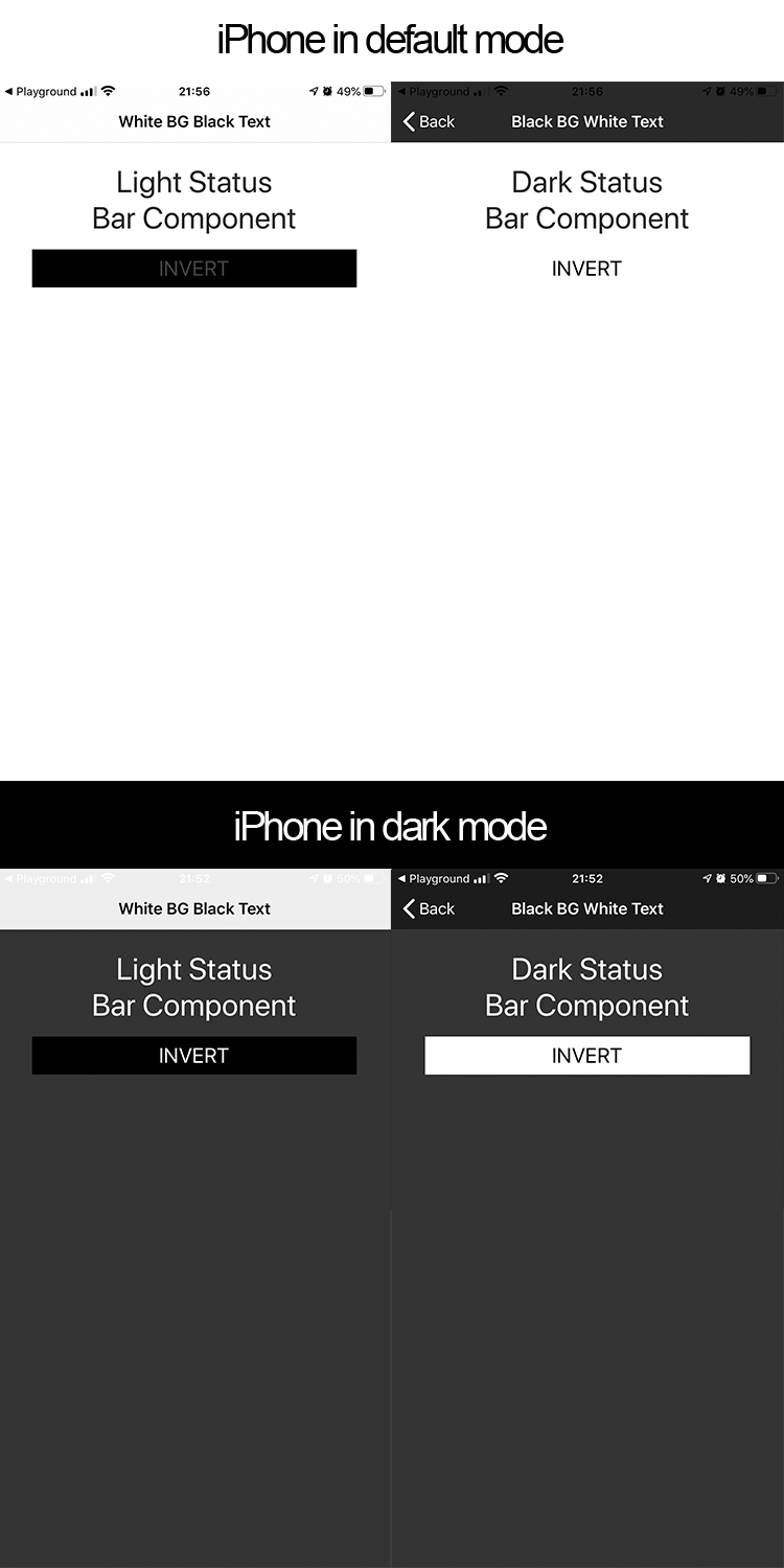 NativeScript Angular StatusBar IOS Issue Example of the statusbar issue in nativescript angular. Running Project Run the following to get the project going. npm i tns preview Scan QR on ios device Example of what you should see